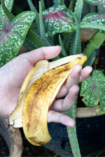 Il n'est pas rare de trouver des astuces conseillant d’utiliser la peau de banane en la faisant macérer dans de l'eau chaude pendant au moins 48 heures avant de l'utiliser pour arroser vos plantes. Si vous décidez d’utiliser cette technique, il est recommandé de ne pas le faire plus d’une fois par mois. Appliquer cette “eau enrichie en nutriment” sur les feuilles de vos plantes permettrait également de les nettoyer et de les rendre plus brillantes.