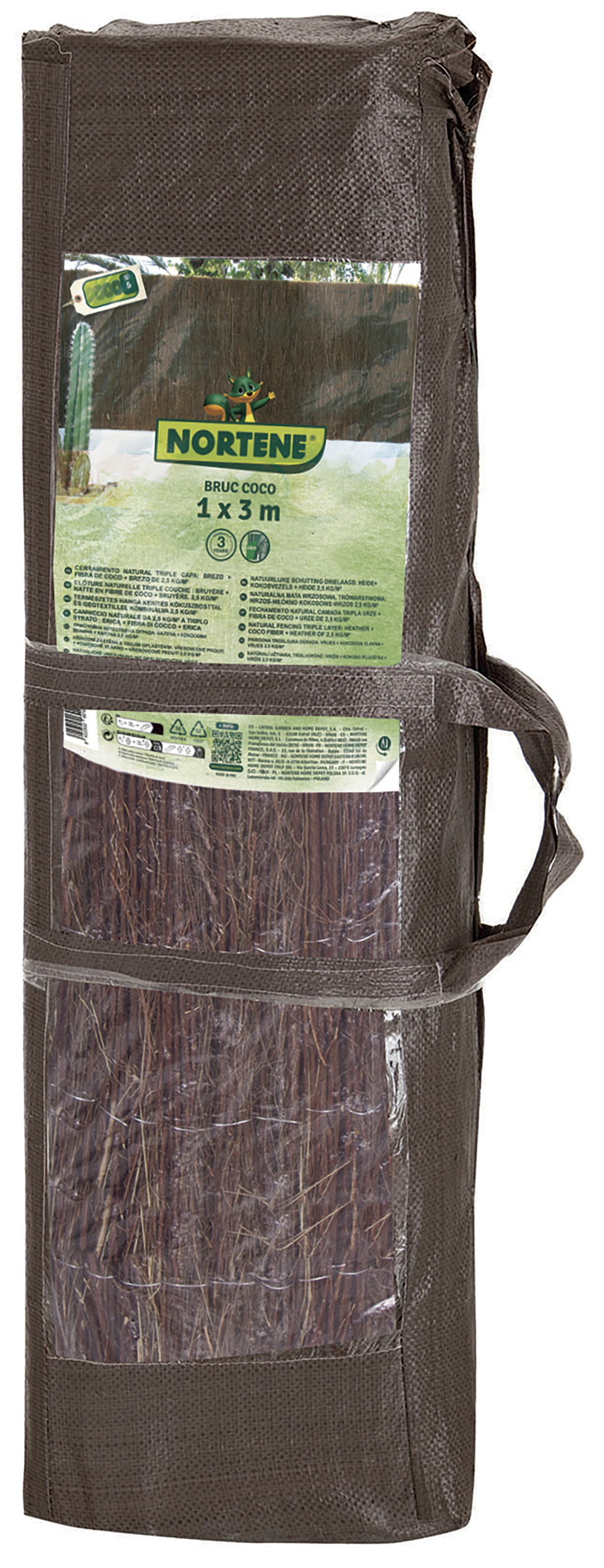 Heather + coconut. This new screening combines three folds that provide robustness and maximum privacy. By alternating two folds of heather and one of coconut, it gives a natural look with effective masking.