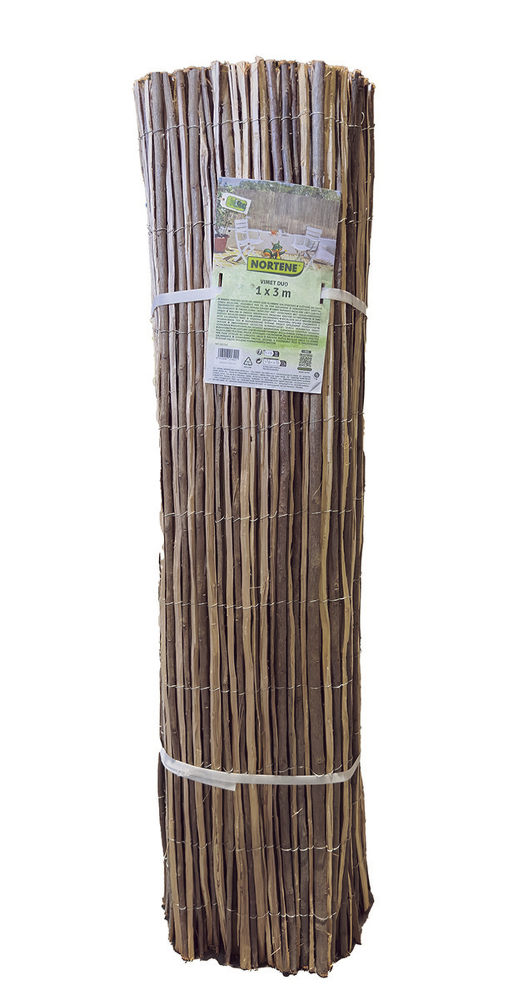 Combinatie van natuurlijke rieten spijlen. Door de positie van de steel af te wisselen, is het mogelijk om een unieke tweekleurige afwerking te verkrijgen, anders dan de rest van de natuurlijke afrastering.
