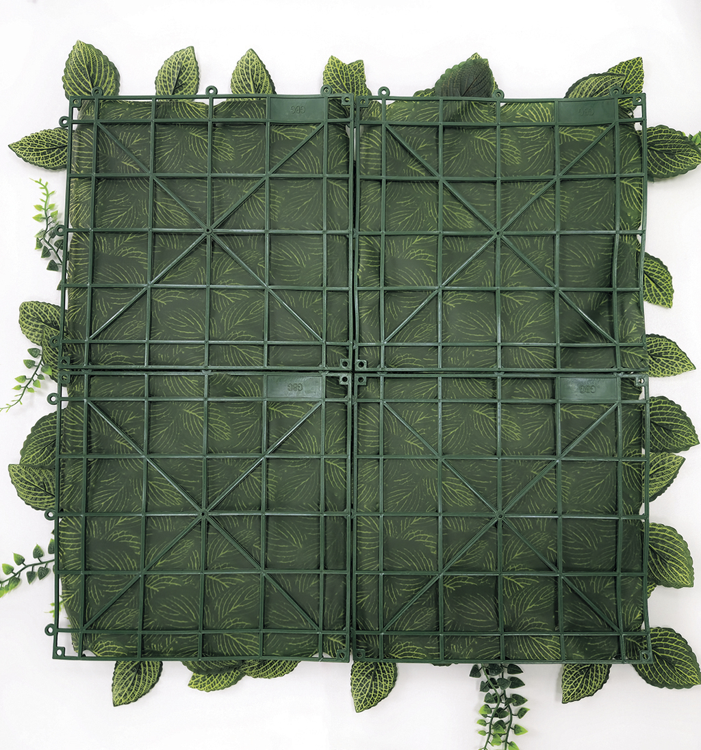 Mur végétal synthétique avec dos à motif de feuilles