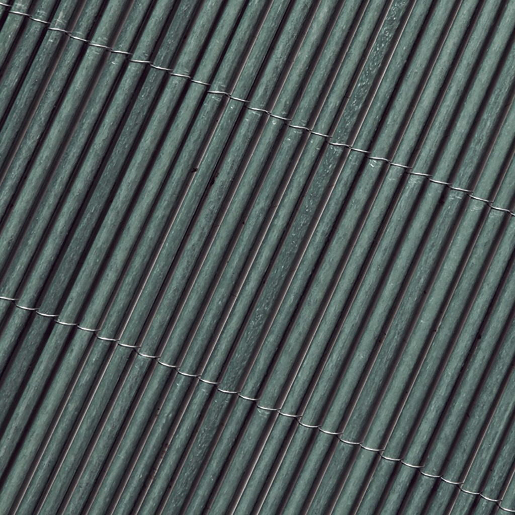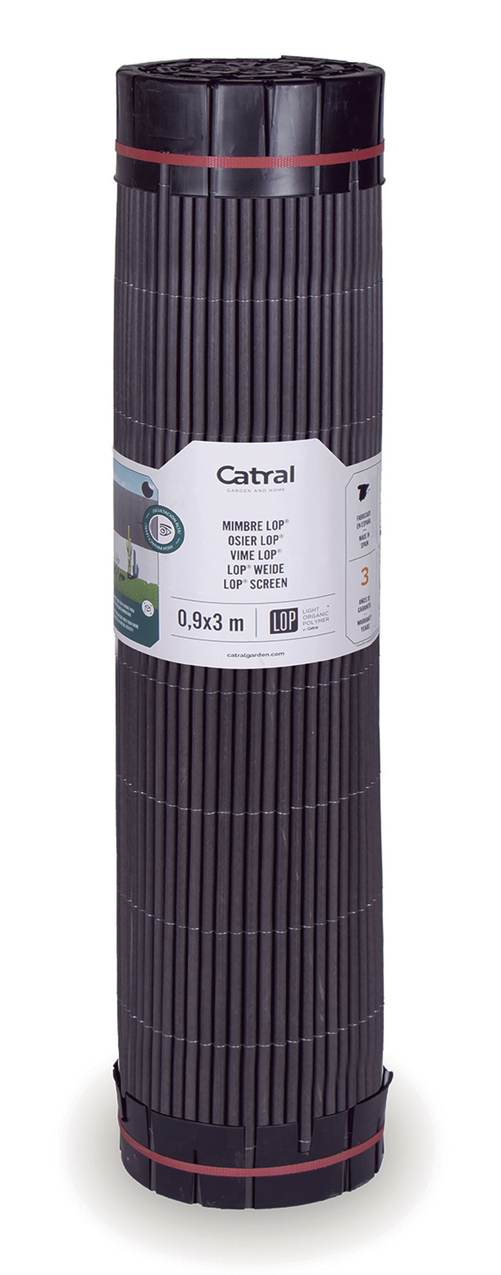 Canisse LOP (Light Organic Polymer). Clôture en composite semi-synthétique et recyclée. Lames homogènes assemblées par fil acier galvanisé. Brevet européen.